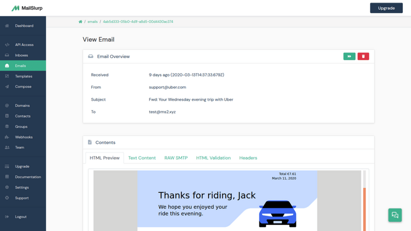 MailSlurp email webhooks let you generate and then assign fake emails to customers. Users can forward attachments etc to
