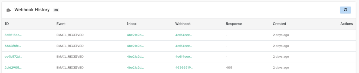 You can configure email addresses to send events to your server whenever an event filter is matched. This could be when an email is received, when a new contact is made, when attachments arrive - you decided. You can then process thousands of emails that are backed by safe reliable queues hosted by MailSlurp.